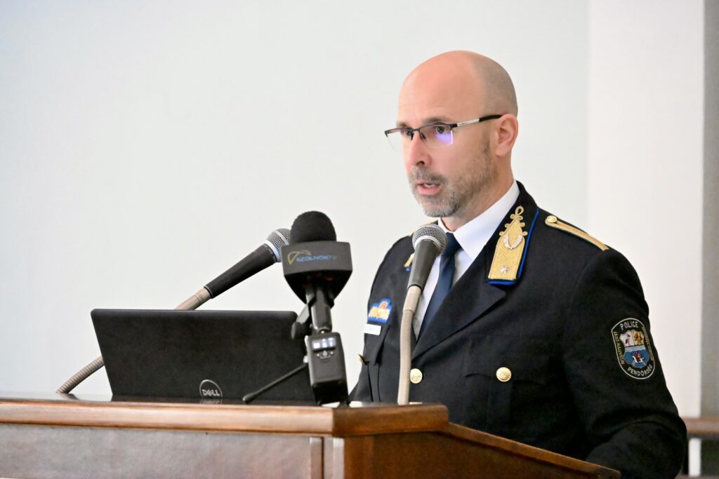 A közbiztonság helyzetéről dr. Rádi Norbert dandártábornok, vármegyei rendőr-főkapitány számolt be. Mint kiemelte, 2025-ben 5,3 százalékkal emelkedett a felderített esetek száma. Az esetek közül kiemelkedik a vagyon elleni bűncselekmények aránya, az összes regisztrált bűncselekmény 66 százaléka ilyen jellegű. Az önkormányzatok által létesített térfigyelő kamerarendszerek kiépítettségének köszönhetően kiemelkedően jó a közterületen elkövetett bűncselekmények felderítettsége. A rablások esetében stagnál az esetek száma, minden alkalommal sikerült felderíteni az elkövetőket, csakúgy, mint a szándékos emberölések tekintetében. Továbbra is jelentős az online térben elkövetett bűncselekmények aránya, ám örömteli változás, hogy a kárérték csökken a folyamatos figyelemfelhívás nyomán kialakuló társadalmi immunitásnak köszönhetően. Az elmúlt év egyik kiemelt területe a kábítószer kereskedelem elleni küzdelem volt. A DELTA programnak köszönhetően 353 kg drogot sikerült lefoglalni 2025-ben vármegyénkben, ez az országos mennyiség mintegy 20 százaléka.